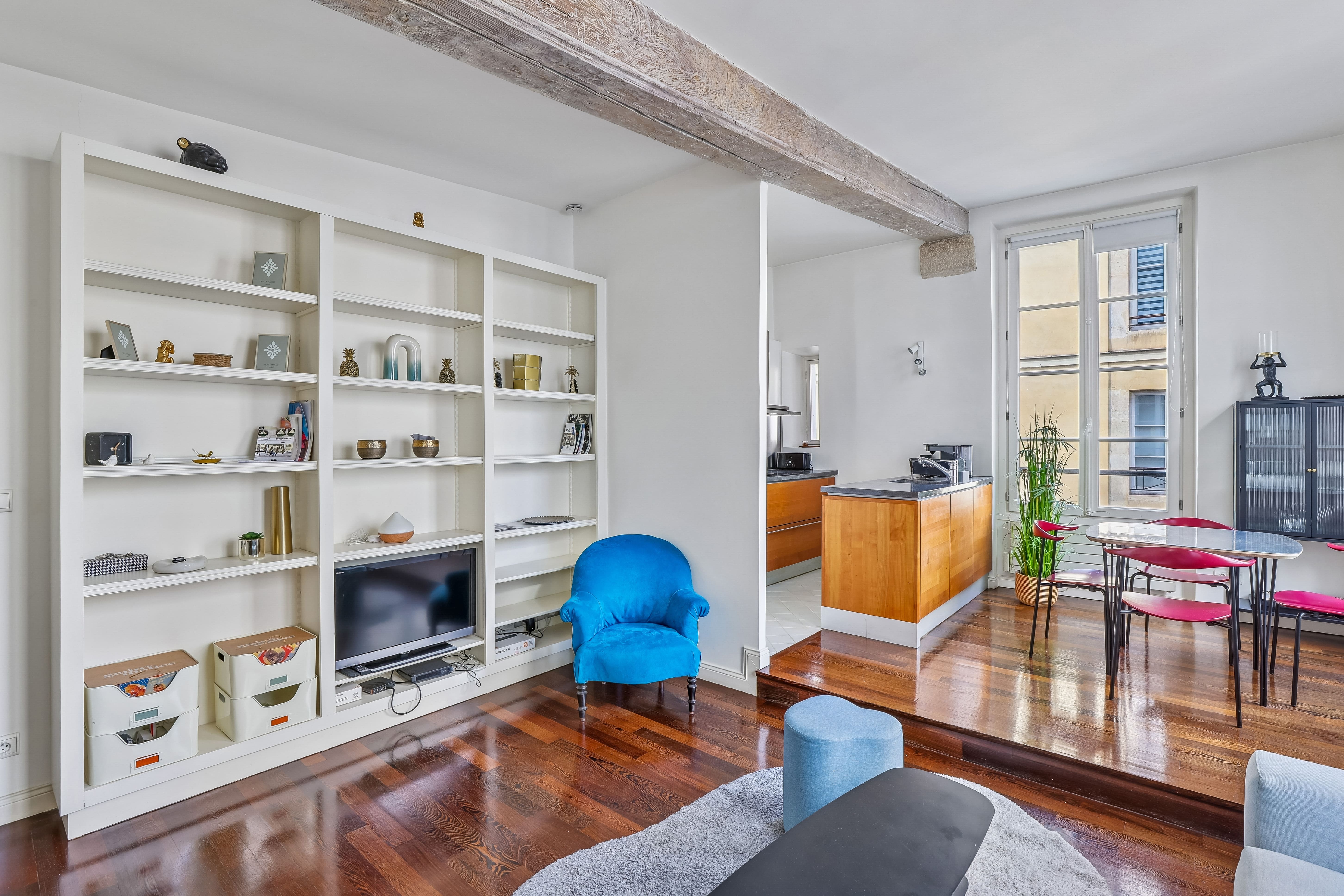 Immediate crush for this charming apartment, an ideal plan with two real bedrooms, in the heart of the Carré des Antiquaires. Thank you for this effective support. Valérie